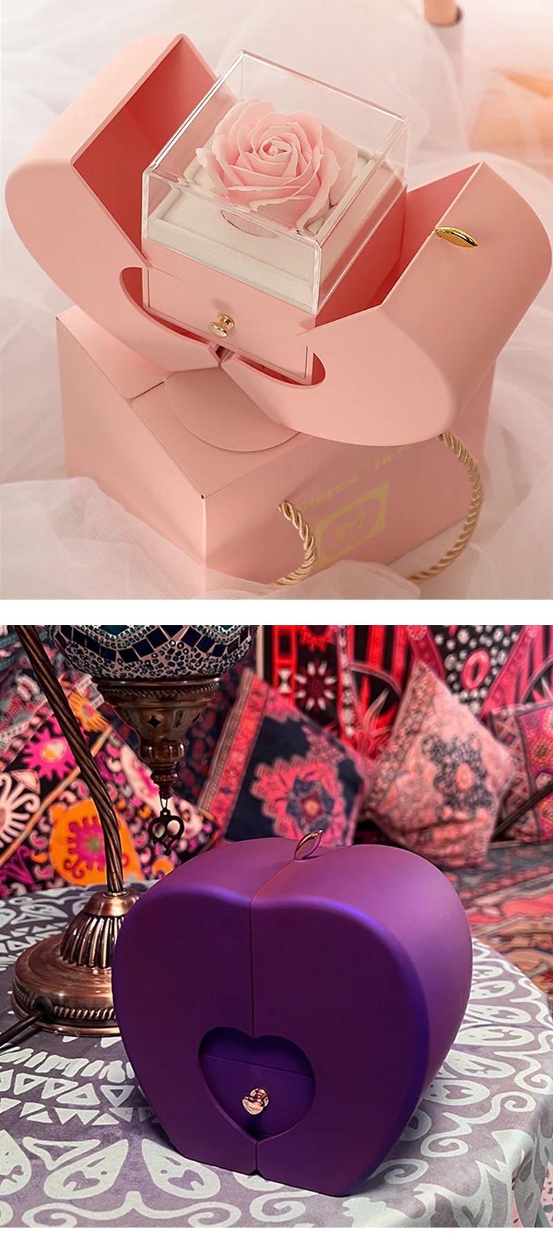 3. Popular Gifts: Purely handmade flowers with rose boxes, which can be used as decorations or as your jewelry storage box, suitable for birthday gifts for women. as a Christmas Valentine's Day gift, anniversary gift, and Mother's Day gift for her.